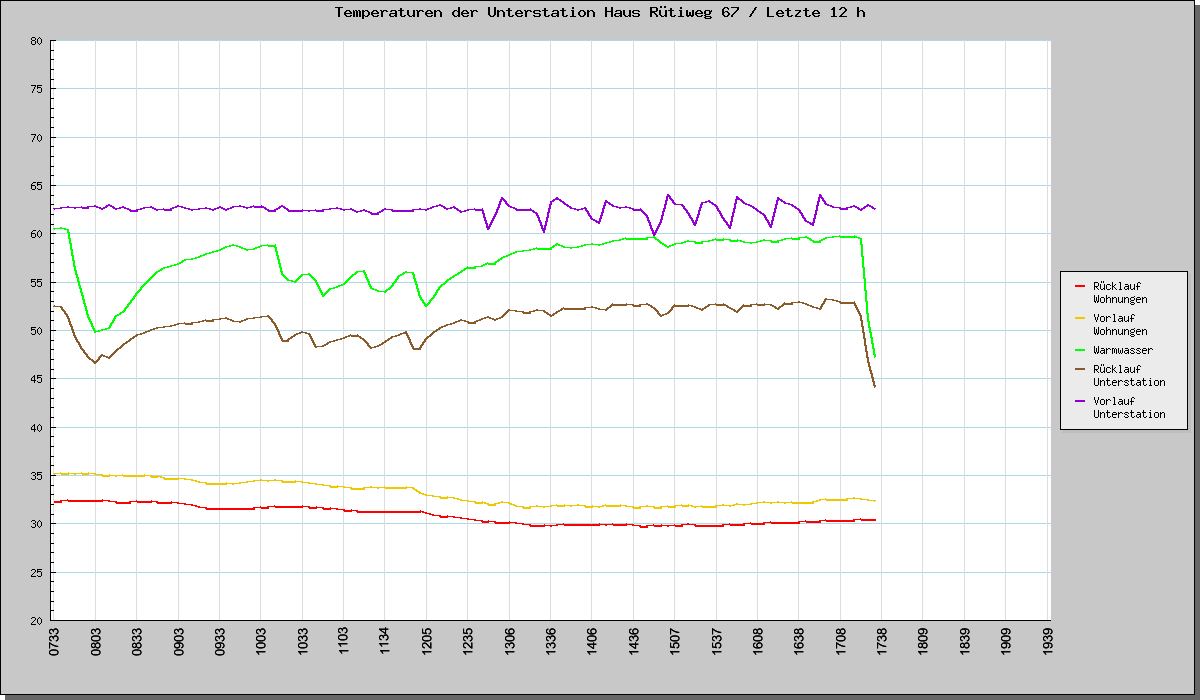 Heizzentrale Haus Unterstation 12h, nach Datum Frischwassertemperatur